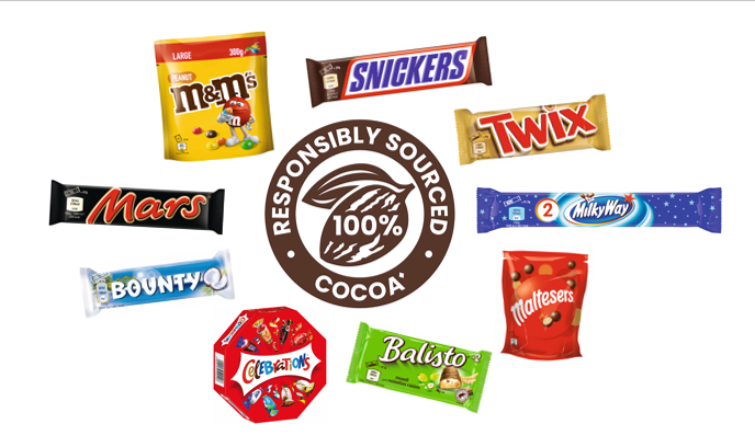 Für das Jahr 2023 hat Mars Verträge über den Kauf von Kakao aus verantwortungsvollen Quellen bestätigt. Sie entsprechen der Menge, die in den europäischen Schokoladen-Fabriken von Mars Wrigley verwendet wird. Dazu gehören: Haguenau (Frankreich), Janaszówek (Polen), Slough (Großbritannien), Steinbourg (Frankreich), Veghel (Niederlande) und Viersen (Deutschland). In diesen Produktionsstätten werden die folgenden Produkte hergestellt: BALISTO, BOUNTY, CELEBRATIONS, DOVE/ GALAXY, M&M’S, MALTESERS, MARS, MILKY WAY, SNICKERS und TWIX (Milchschokolade).