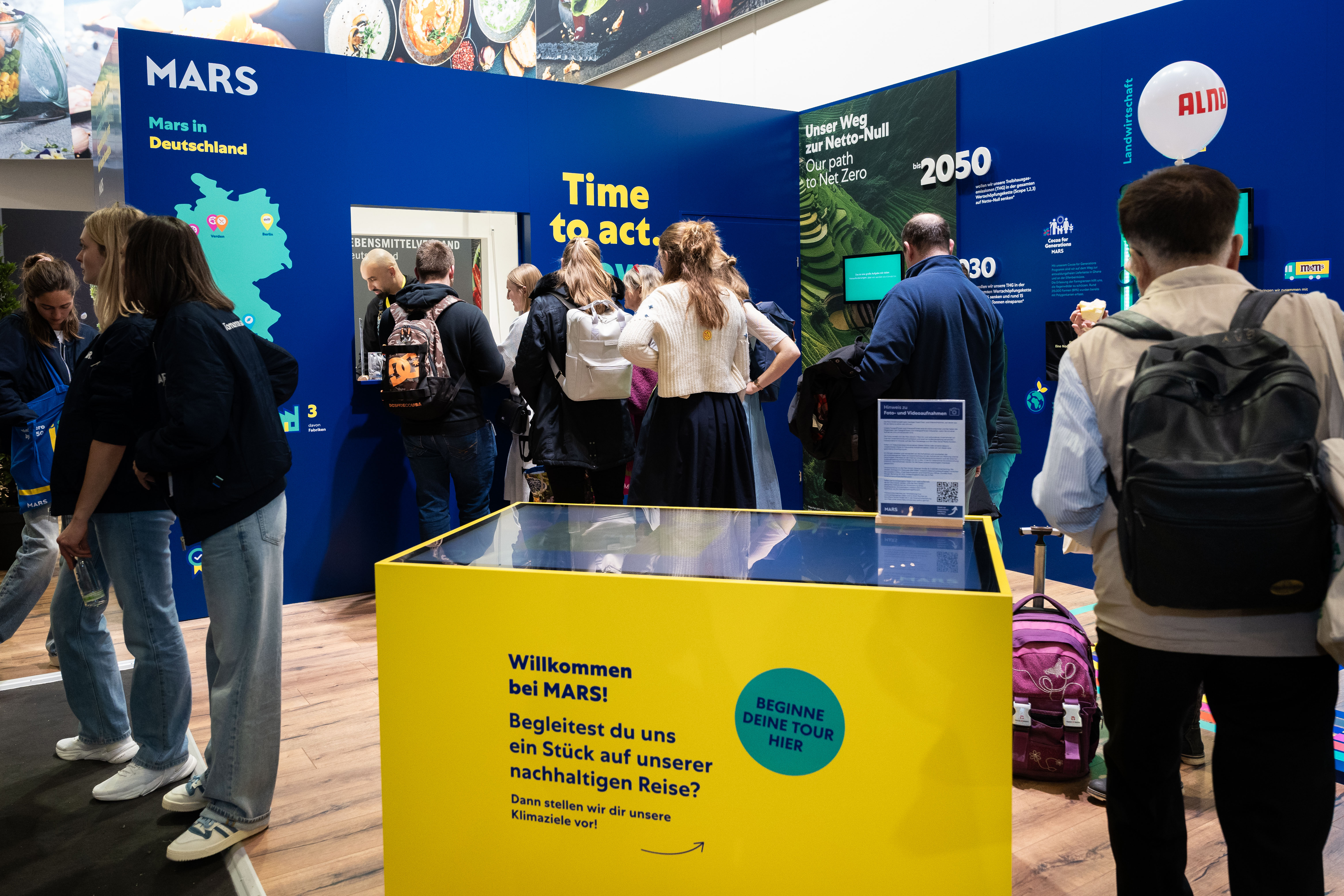 Im Mittelpunkt des 30m2 großen Standes (Halle 3.2, Stand 401) steht das Klimaversprechen des weltweit tätigen Unternehmens, bis 2050 seine Treibhausgas-Emissionen auf Netto-Null zu senken1 – über die vor- und nachgelagerte Lieferkette hinweg (Scope 1 bis 3). Zudem will Mars seine Treibhausgasemissionen bis 2030 in seiner Wertschöpfungskette um 50 Prozent senken und rund 15 Millionen Tonnen CO2 einsparen (ausgehend vom Basisjahr 2015).*