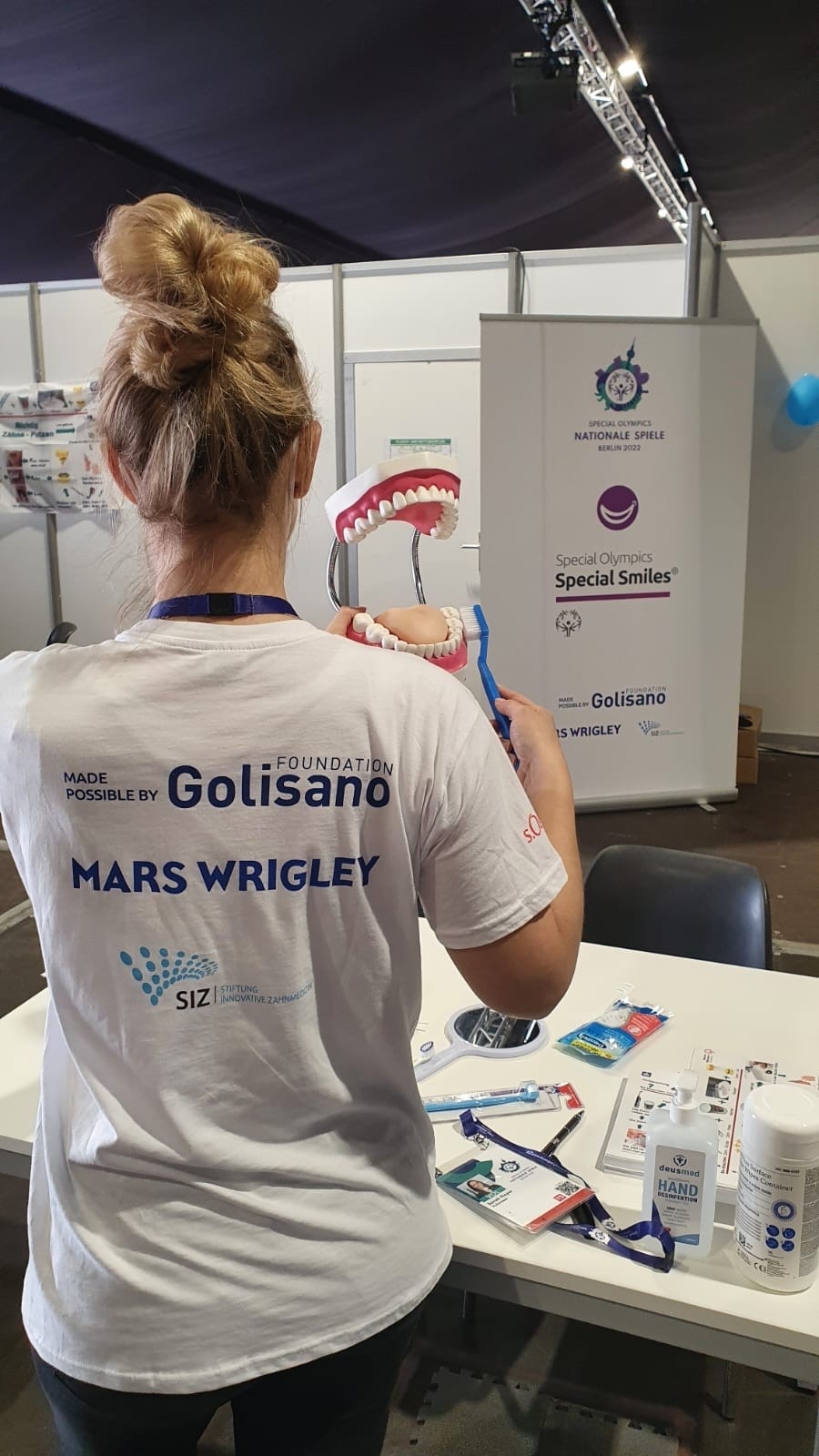 Unterhaching, 21. Juni 2022 – Anlässlich der Special Olympics Nationalen Spiele Berlin 2022 vom 19. bis 24. Juni nehmen rund 30 Volontärinnen und Volontäre von Mars Wrigley teil, um im Rahmen der Gesundheitsdisziplin „Special Smiles – Gesund im Mund“ den antretenden Athletinnen und Athleten Informationen und Präventivmaßnahmen zur Mund- und Zahngesundheit bereitzustellen. Aufgrund der geltenden Corona-Regelungen finden dieses Jahr keine Zahnarztuntersuchungen vor Ort statt. Dafür veranschaulichen die Ehrenamtlichen die richtige Zahnputztechnik anhand übergroßer Modelle.