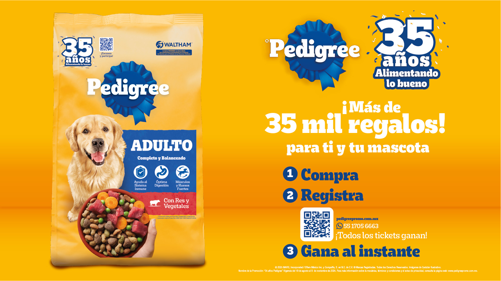 Como parte de esta gran celebración, PEDIGREE® lanza una mega promoción nacional con más de 35,000 premios y la oportunidad de ganar hasta $100,000 pesos.
